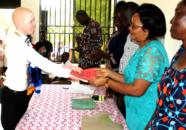 Mwalimu mkuu Shule ya Msingi Buhangija Seleman Kipanya, akizungumza kwenye Mahafali hayo na kuipongeza Serikali kwa kujenga uzio kwenye mabweni ya kulea watoto wenye ualbino.