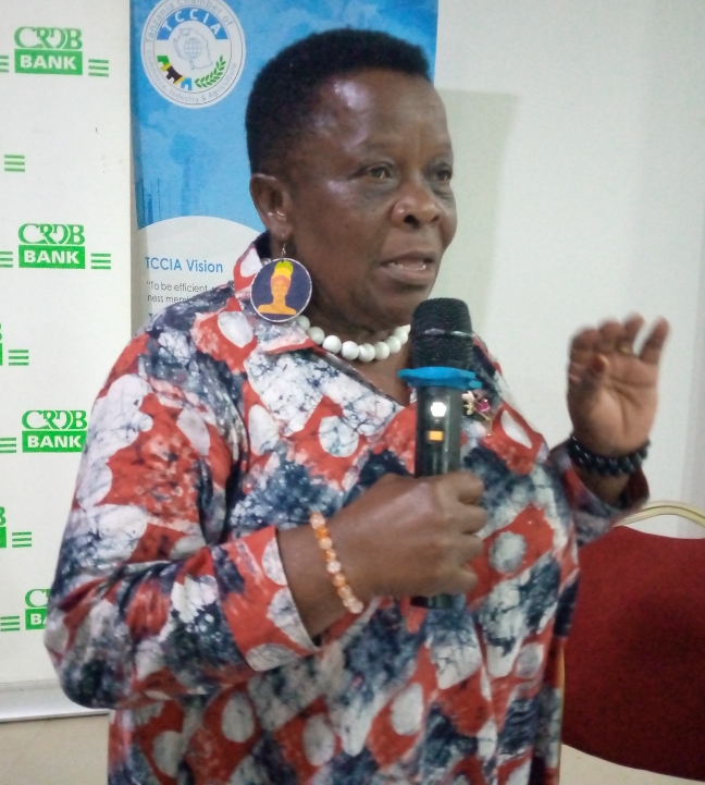Rais wa Chemba ya Biashara Viwanda na kilimo Tanzania TCCIA Vicent Bruno Minja akizungumza na mwenyekiti wa TCCIA Jonathan Manyama katikati kulia ni Mjumbe wa Bodi Jackton Koyi