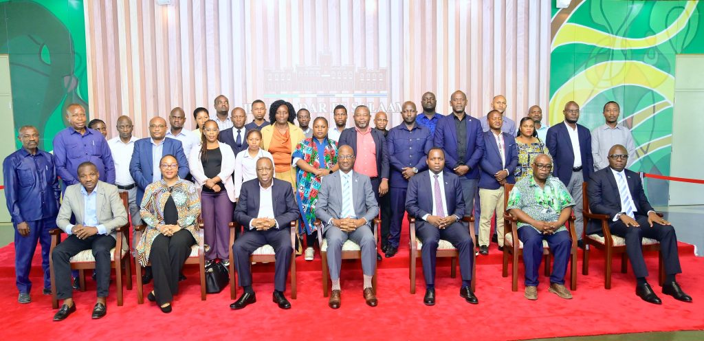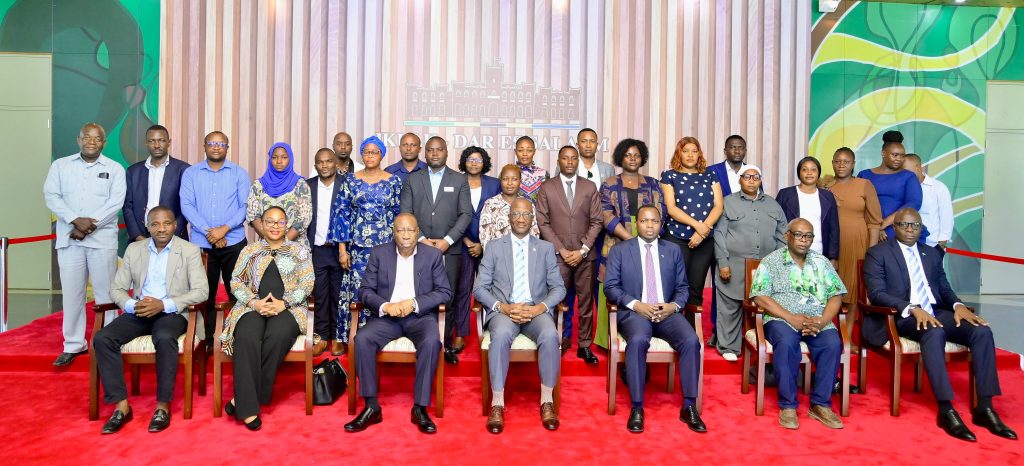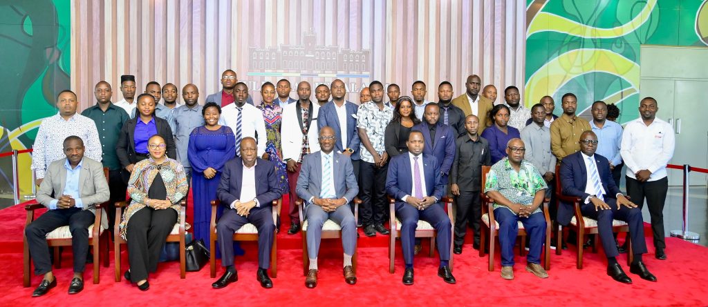 Mkurugenzi wa Mawasiliano ya Rais, Ikulu, Bw. Bakari Machumu akiwa na viongozi mbalimbali kwenye picha ya pamoja na Waandishi wa Habari wa Mtandaoni, pamoja na Wanablogu mbalimbali, Ikulu Jijini Dar es Salaam tarehe 27 Novemba, 2025.